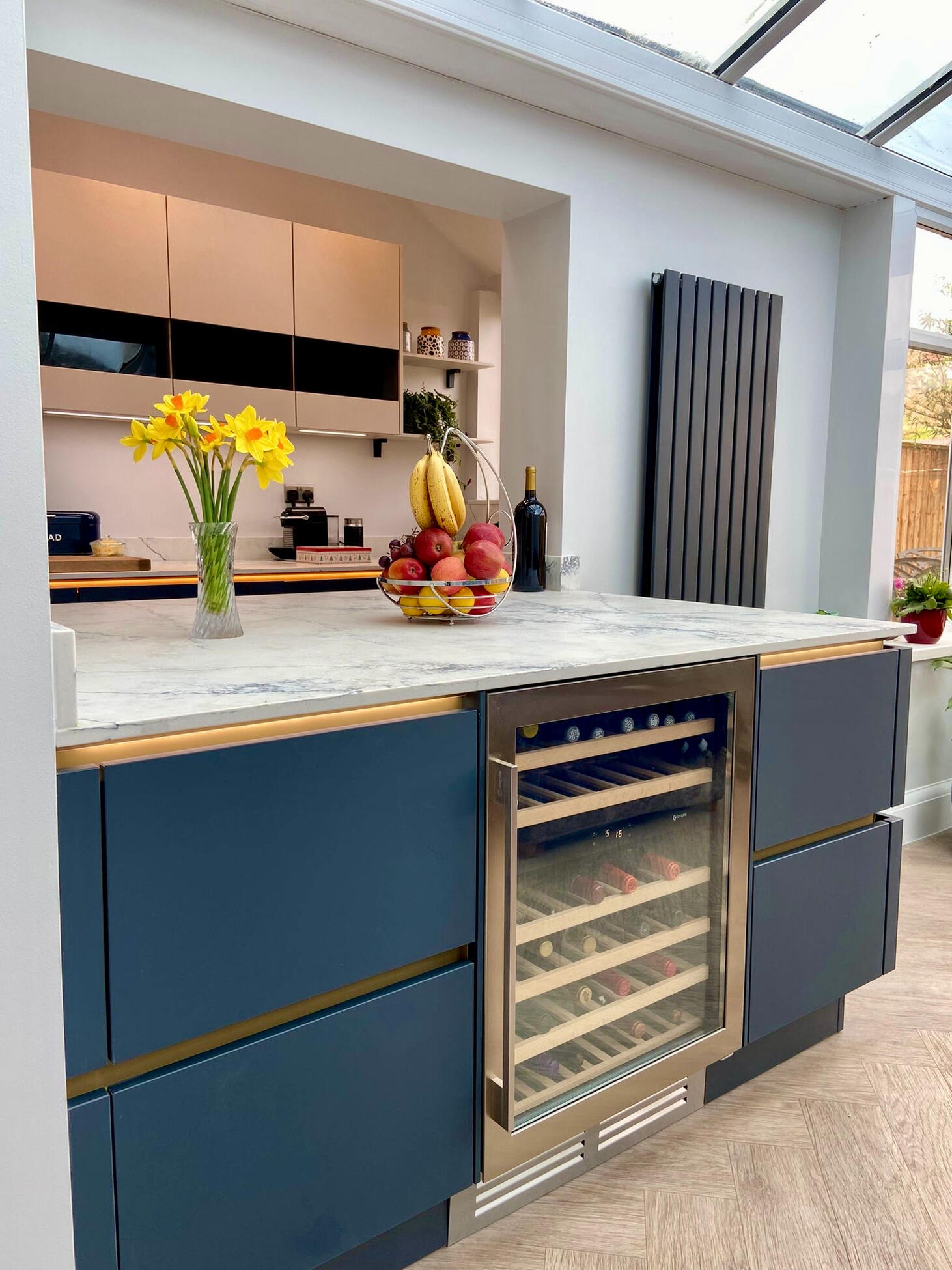 Monday 9th January 2023 the building work began. It included knocking down an internal load bearing wall and replacing the original dining room window with sliding patio doors.Thursday 12 January, I spoke to Jodi in the Bath office and agreed to stay my chosen date of Monday 27th March for James the kitchen fitter to start. I am pleased to say this date was never changed and everything was co-ordinated to suit.Tuesday 24 January Jodi called to see if I wanted to bring the kitchen install forward. We agreed to leave it as planned.Wednesday 15 March Bridget Hall from Kutchenhaus makes a visit to check all is for the delivery.Wednesday 22 March – Kitchen was delivered expertly by the two delivery drivers. They reported that there were some parts missing from the Bora Hob. I have no idea if they turned up or what as everything was so professionally done.Thursday 23 March - The room was ready 1 x week early and James asked if he could start. He started at 09:00 and worked solid till 19:00 – very impressed.Friday 24 March – James 09:00 to 19:15Saturday 25th March – James 09:00 to 18:00 – finished until worktops in place.Monday 3 April – Templater for worktops Nathan – what a great chap and job – 08:00 to 11:15Thursday 13 April – All as planned – Nathan & Seb carry the tops and put them in place. Seb fits then – beautiful job.08:00 to 10:30am Seb drilled a hole for me in the cabinet near the hob before he put the worktop in place – no trouble at all.Friday 14 April – James returns to install the hob and fits the tap 08:50 to 12:00I have stated the days and the times so it can be seen how efficient Kuthchenhaus is and what a credit to all the staff for doing such a great job. I wouldn’t bother looking at anyone else should I ever need a new Kitchen. Thank you so much to Rob Cash and his team.